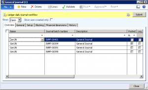 Create a new journal Line and when you select- submit the journal name-, a yellow line will appear in the journal name.