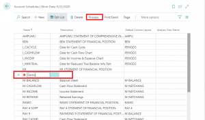 Click on Process –> Edit Account Schedule following window will appear