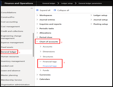 First, we need to Enable ‘Financial tags’ feature in Feature management, so this feature will be available in General Ledger Module.