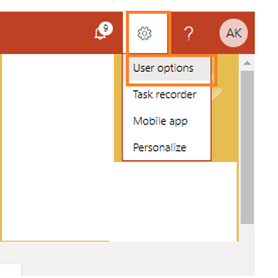 1. Login to 365FO application, Click Settings User options