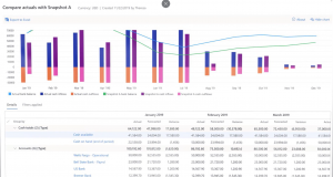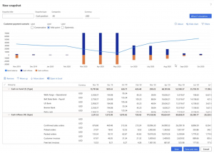 Notice that it’s easy to change risk using Customer Payment Scenarios – Conservative (low risk) to Mid-Point to Optimistic (higher risk).  Snapshots are used and saved to compare actuals and forecasts over time.  This is again looking more at cash in and cash balance position.
